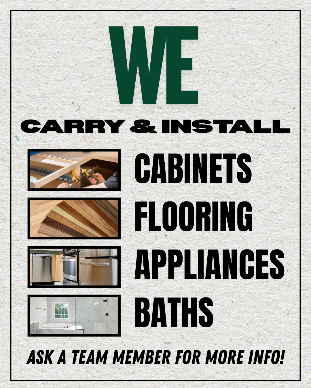 Green’s Supply Depot is dedicated to being the trusted partner for homeowners, contractors, and businesses. With a mission to provide high-quality products, expert advice, and personalized service, Green’s empowers customers to care for their properties, achieve their goals, and bring their dreams to life.